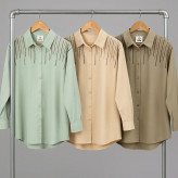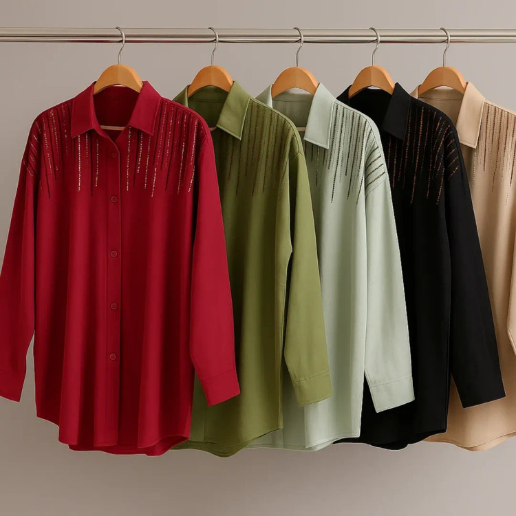 "همینی که دنبالش بودی این مدل یادتون عید آوردیم به درخواست شما دوباره شارژ کردیم "شومیز سرشانه پولکدوزی — ترکیبِ ظرافت و راحتی. جنس: لنین (نرم، خنک و مناسب فصول گرم جزئیات: پولکدوزی شانه برای جلوهی مجلسی و خاص رنگها: مشکی • پستهای • نسکافهای • سبز • کرم • زرشکی سایزها: L / xl